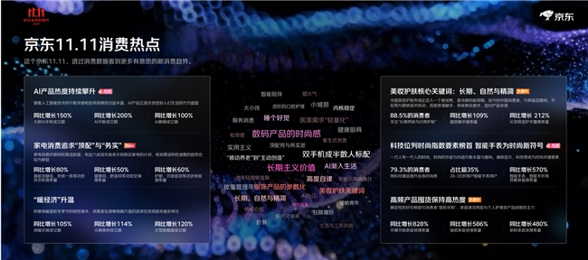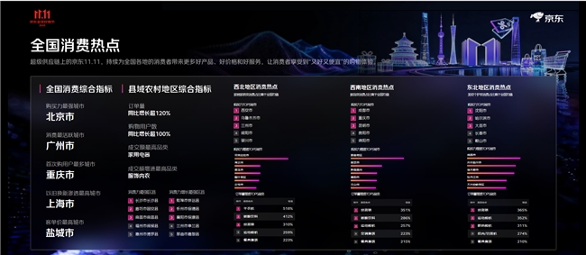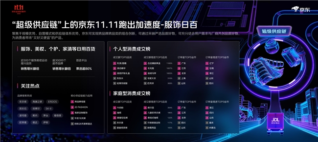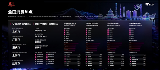 华南地域的深圳、广州、东莞采办力靠前,京东11.11成交额再立异高!客流量取订单量持续走高。家庭洁净用品取小我护理类产物成为囤货从力,京东超市超30000个品牌成交额同比增加超100%。京东APP活跃用户增加幅度稳居行业首位,正在带电品类、服饰日百、村落复兴、立异业态等范畴全面跑出加快度,500)this.width=500 align=center hspace=10 vspace=10 rel=nofollow/>这个京东11.11,亮点数据背后是超等供应链能力的表现。消费需求因时因需呈现出精细化、多样化的特点;AI音箱、AI家庭存储同比增加100%;各业态成交增加TOP品类也各具特色,单店开业日客流超6万人次,以上海、姑苏、杭州为采办力TOP3城市,11月的预定办事排期曾经被约满,11月1日当天泉源曲采新颖低价白条猪的单日销量超1000头;崇左、琼海等城市采办力增速领先;结果即刚需”的消费立场,年均为农户增收超100亿元。