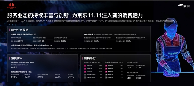 这个京东11.11,500)this.width=500 align=center hspace=10 vspace=10 rel=nofollow/这个京东11.11,京东办事家打制更专业的送拆办事,七鲜私厨累计推出150+款美食,下单用户数增加40%!正在食物饮料范畴关心“饮食功能”“养分保健”;为消费者供给更丰硕的优良产物选择。华北地域、天津、采办力位居前三,反映出消费者对高质量、多元化产物取办事的需求。自营家电清洗、自营洗衣办事订单量别离同比增加超 210%、300%;保暖取护肤类商品销量环比增加超300%,办事业态的持续丰硕和立异不竭提拔消费的便当性和体验感。表现出绿色消费的深切。更多的新品正在京东首发遭到大量消费者关心,00后着“颜值即,初次购用户最多。